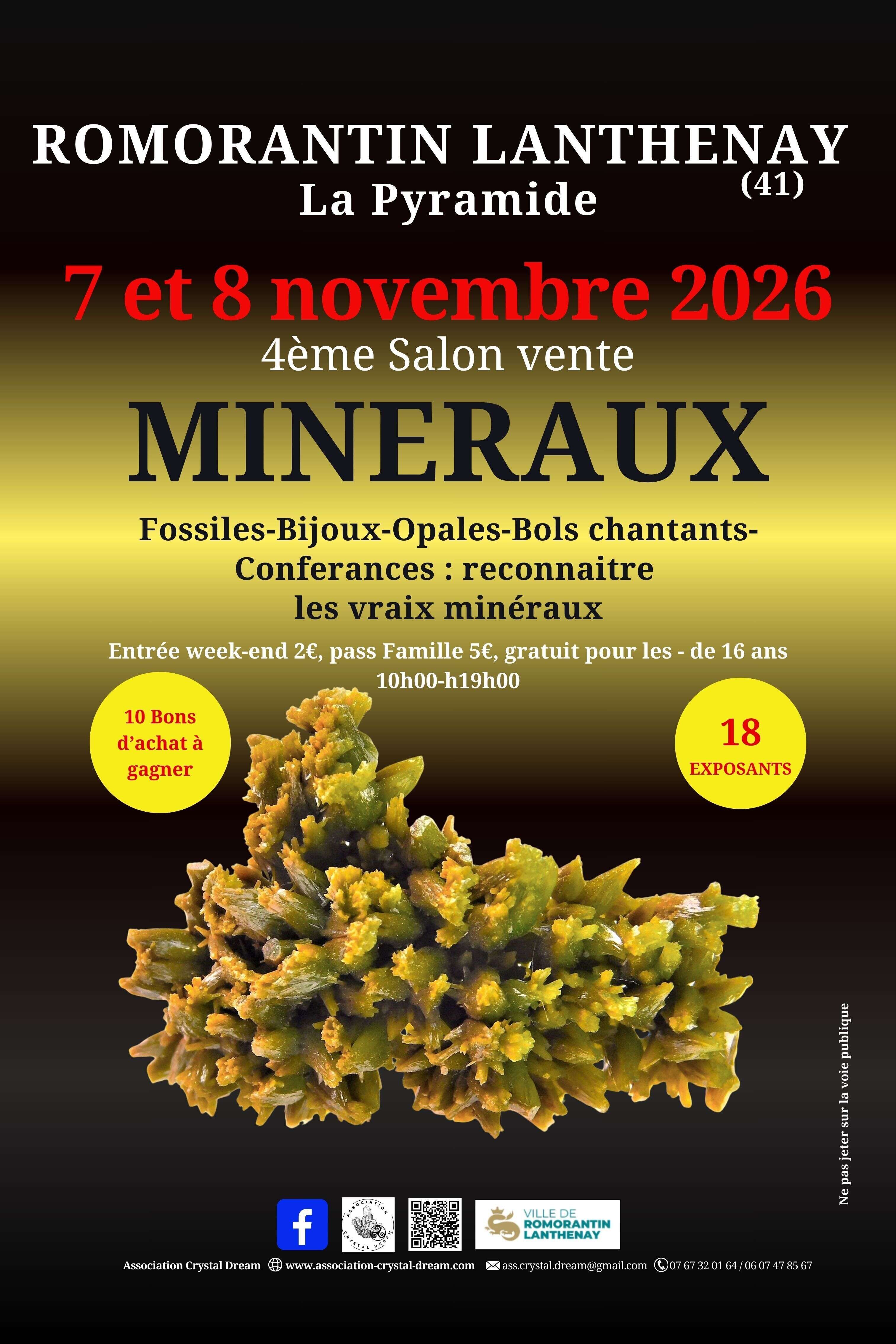 A confirmer pour 2026, à la Pyramide, aura lieu la troisième édition du salon des minéraux, avec un changement de salle, plus agréable et mieux située. Une quinzaine d'exposants accueilleront les amateurs et les collectionneurs durant tout le weekend .